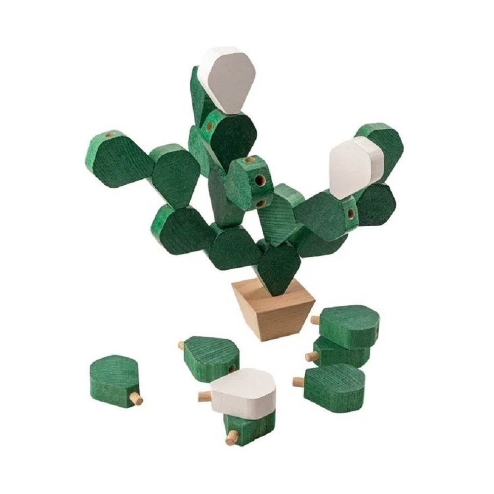 Design minimal geometric – joacă infinită. Jocul Cactus se deosebește de alte jocuri echilibristice prin aspectul său minimal și geometric care ascunde posibilități infinite. Poate fi jucat de 2-4 persoane, indiferent de vârstă, fiindcă utilizarea celor 24 de piese prezintă o provocare chiar și pentru cei cu un simț de echilibru excelent. Conceptul jocului este foarte simplu: jucătorii așază piesele din lemn cu îndemânare pentru a construi un cactus, având grijă ca „planta” să nu cadă. Piesele de construcție au toate aceeași formă, însă diferă numărul găurilor de pe ele, ceea ce permite multe posibilități tactice.