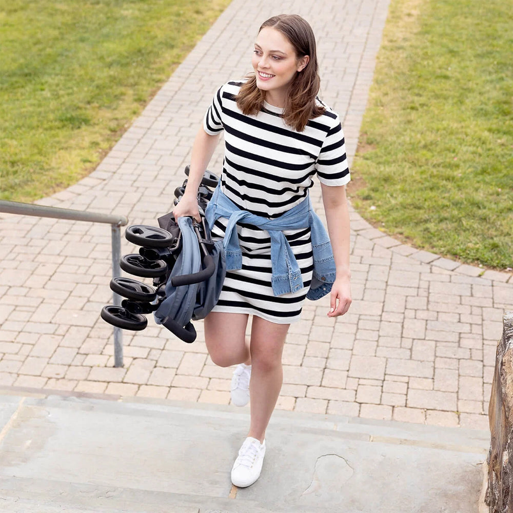 Fie că este necesar un cărucior de călătorie pentru vacanțe sau un cărucior secundar pentru bunici și îngrijitori, EZLite reprezintă o soluție practică și accesibilă. Cu o greutate de numai 6,6 kg, acest cărucior ușor se remarcă prin pliere rapidă și compactă, facilitând orice deplasare fără efort suplimentar. În plus, sistemul de blocare integrat permite ca EZLite să rămână strâns și ordonat în spațiile de depozitare.