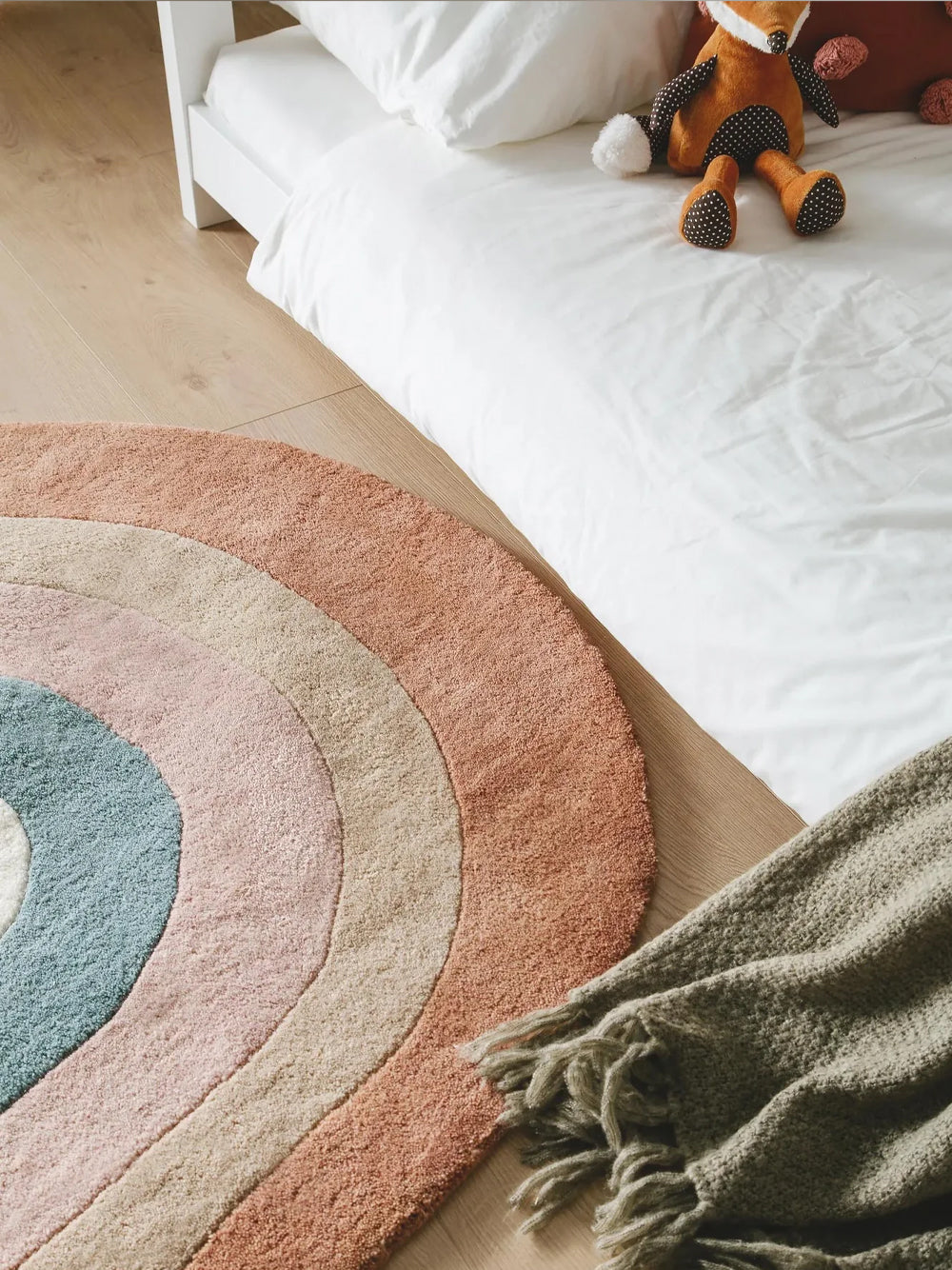 În plus, este un produs perfect adaptat nevoilor moderne, fiind potrivit pentru încălzire în pardoseală, astfel încât confortul termic să fie garantat în orice moment. Cu o formă deosebită de curcubeu ce integrează elemente organice, acest covor transformă camera copilului într-un spațiu plin de magie și farmec, gata să găzduiască cele mai frumoase aventuri.