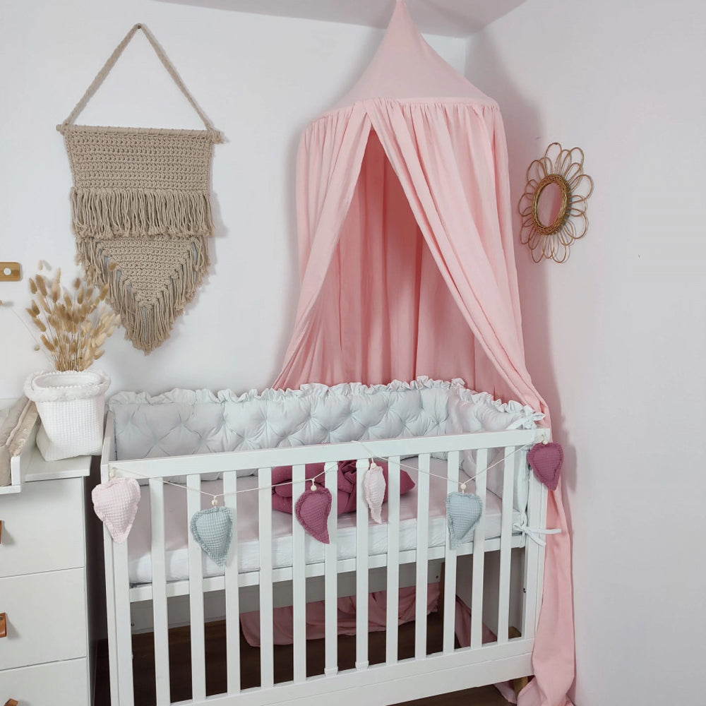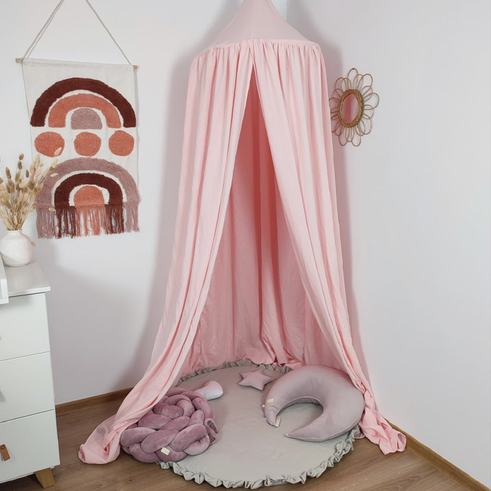 Un baldachin din muselina este un plus unic si original pentru interiorul camerei copilului dumneavoastra. Se creeaza o atmosfera uimitoare. Poate fi atarnat deasupra patutului pentru a elimina efectul de spatiu deschis si pentru a ajuta copilul sa accepte mai bine sa doarma in patut. De asemenea, se poate folosi deasupra patului unui prescolar sau al unui copil mai mare, creand un decor original. Baldachinul poate fi agatat oriunde, in completare cu saltelute de joaca sau covorase, datorita carora copilul nostru isi va castiga propriul colt pentru a se juca, a citi carti si a se relaxa.