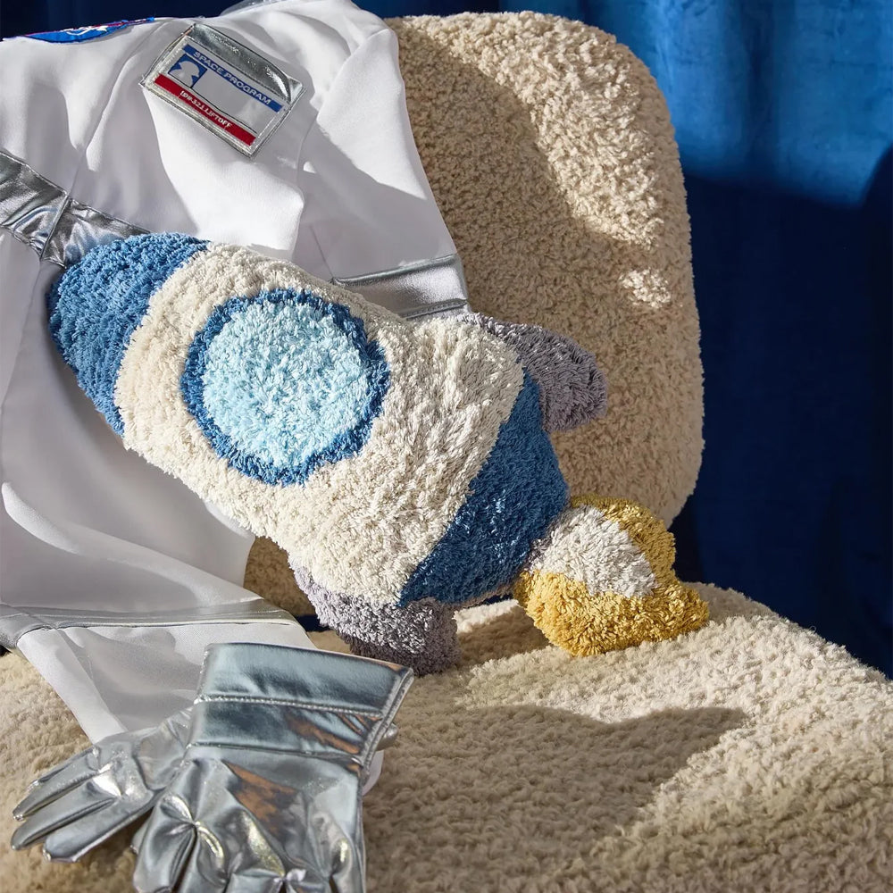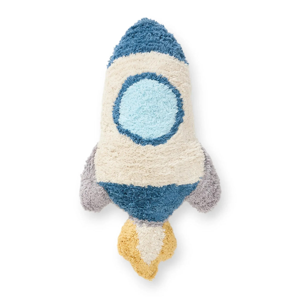O pernuță de joacă în formă de rachetă cosmică aduce un strop de aventură și entuziasm în orice cameră de copil, fiind un accesoriu care îmbină perfect rolul decorativ cu cel funcțional. Designul său ludic o transformă instantaneu într-o piesă de accent pe patul celor mici, dar adevărata sa valoare iese la iveală în timpul sesiunilor de joacă imaginativă.