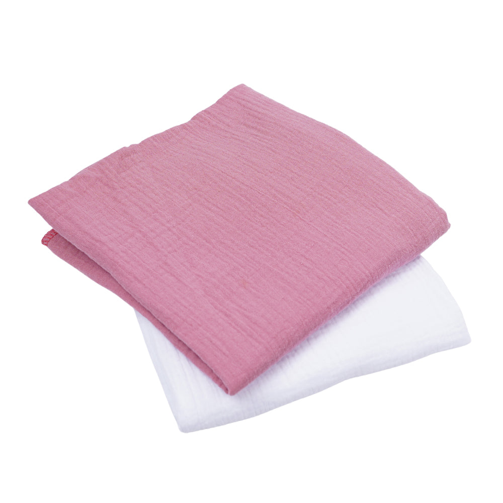 Set 2 paturici muselina 80x80cm - Alb si roz inchis