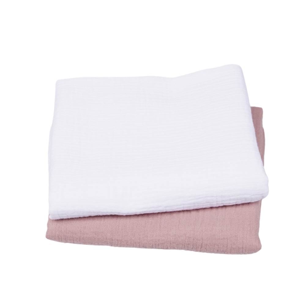 Set 2 paturici muselina 80x80cm - Alb si roz pudra