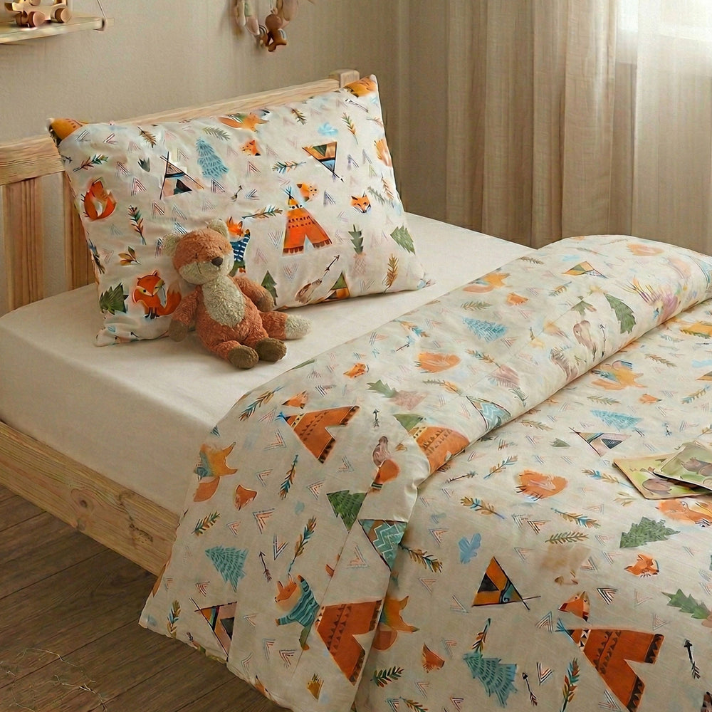 Set lenjerie bumbac, 3 piese - Wild, cearșaf alb