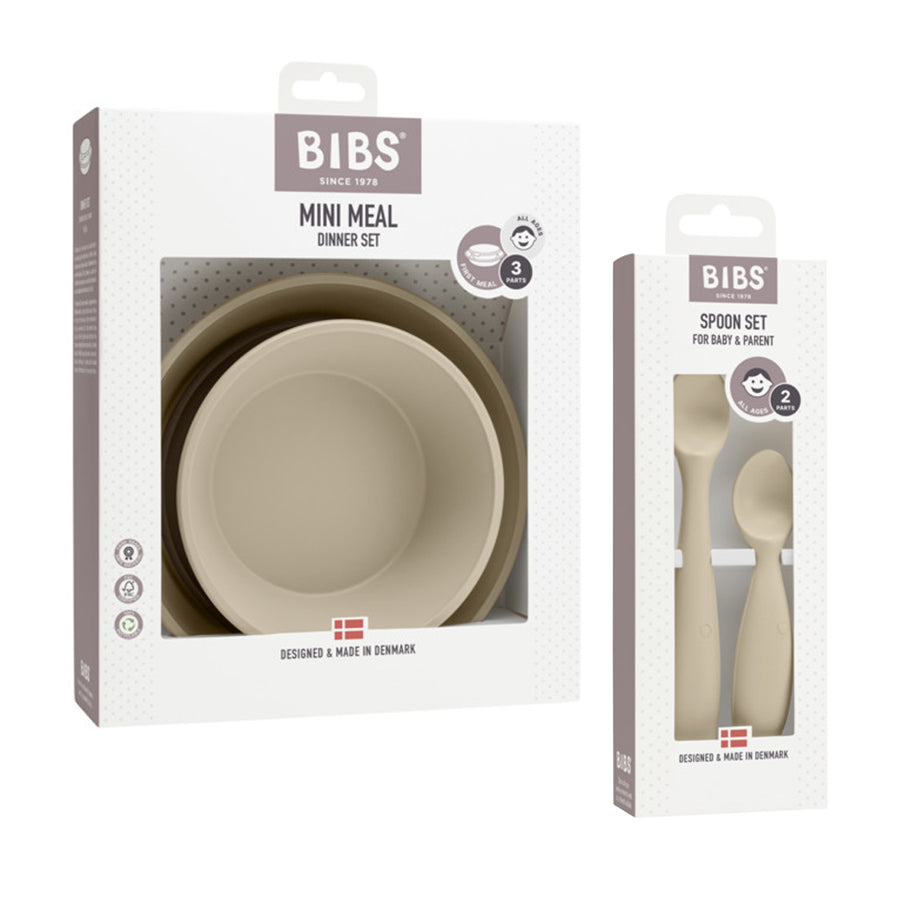 Set pentru hranire si diversificare, farfurie + bol cu capac + 2 lingurite, Bibs Mini Meal, Vanilla
