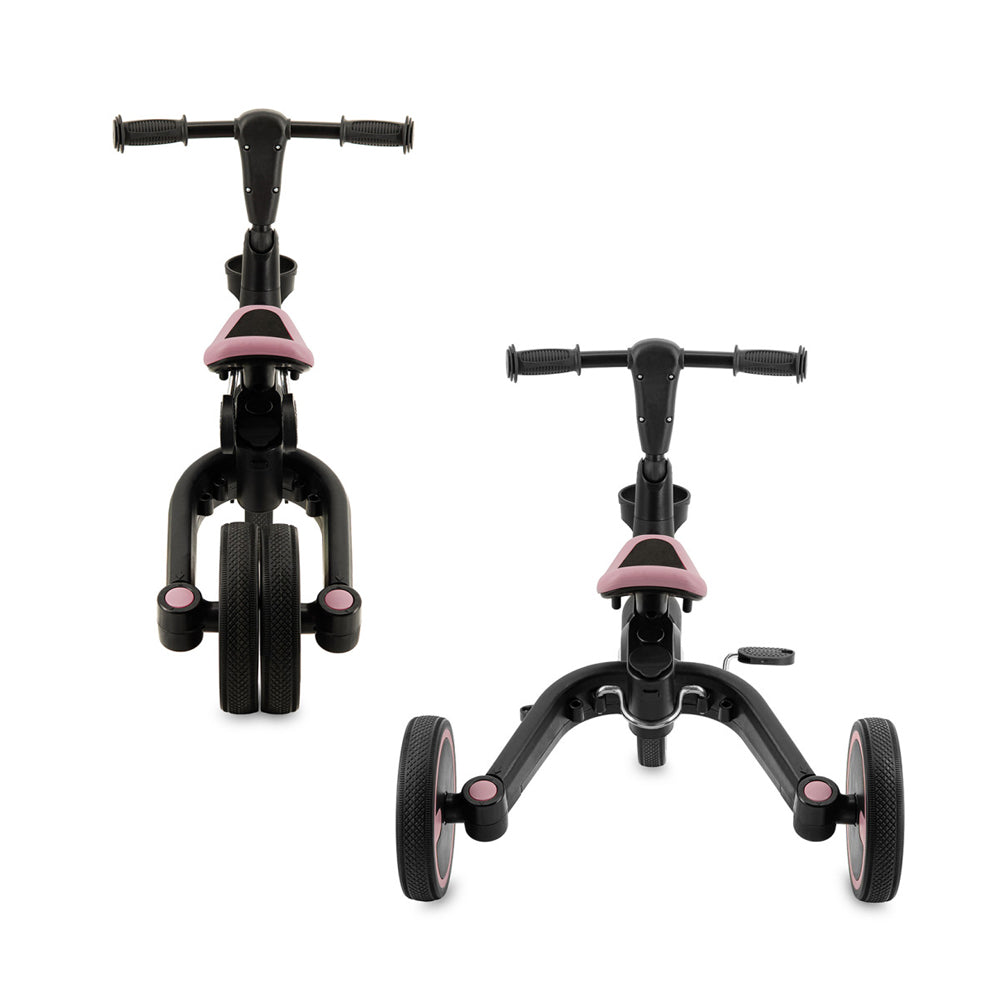 Designul este compact, ideal pentru depozitare sau transport, iar șaua reglabilă pe înălțime asigură o utilizare îndelungată. Detaliile practice nu au fost uitate: există un suport pentru băuturi direct pe ghidon și un loc special sub șa pentru depozitarea pedalelor, astfel încât acestea să fie mereu la îndemână, dar niciodată pierdute atunci când se schimbă configurația în timpul plimbării.