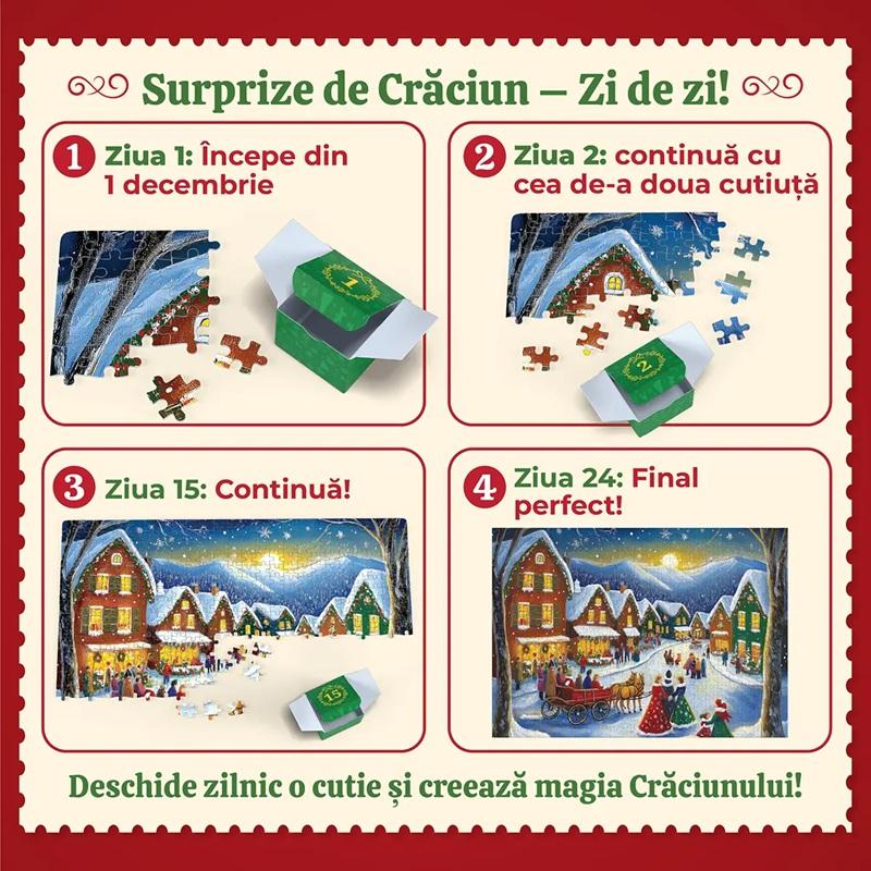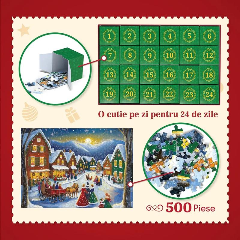 Descoperă magia Crăciunului pas cu pas! Completează Advent Calendar Puzzle – 500 de piese timp de 24 de zile și bucură-te în tihnă de sărbătorile de iarnă.